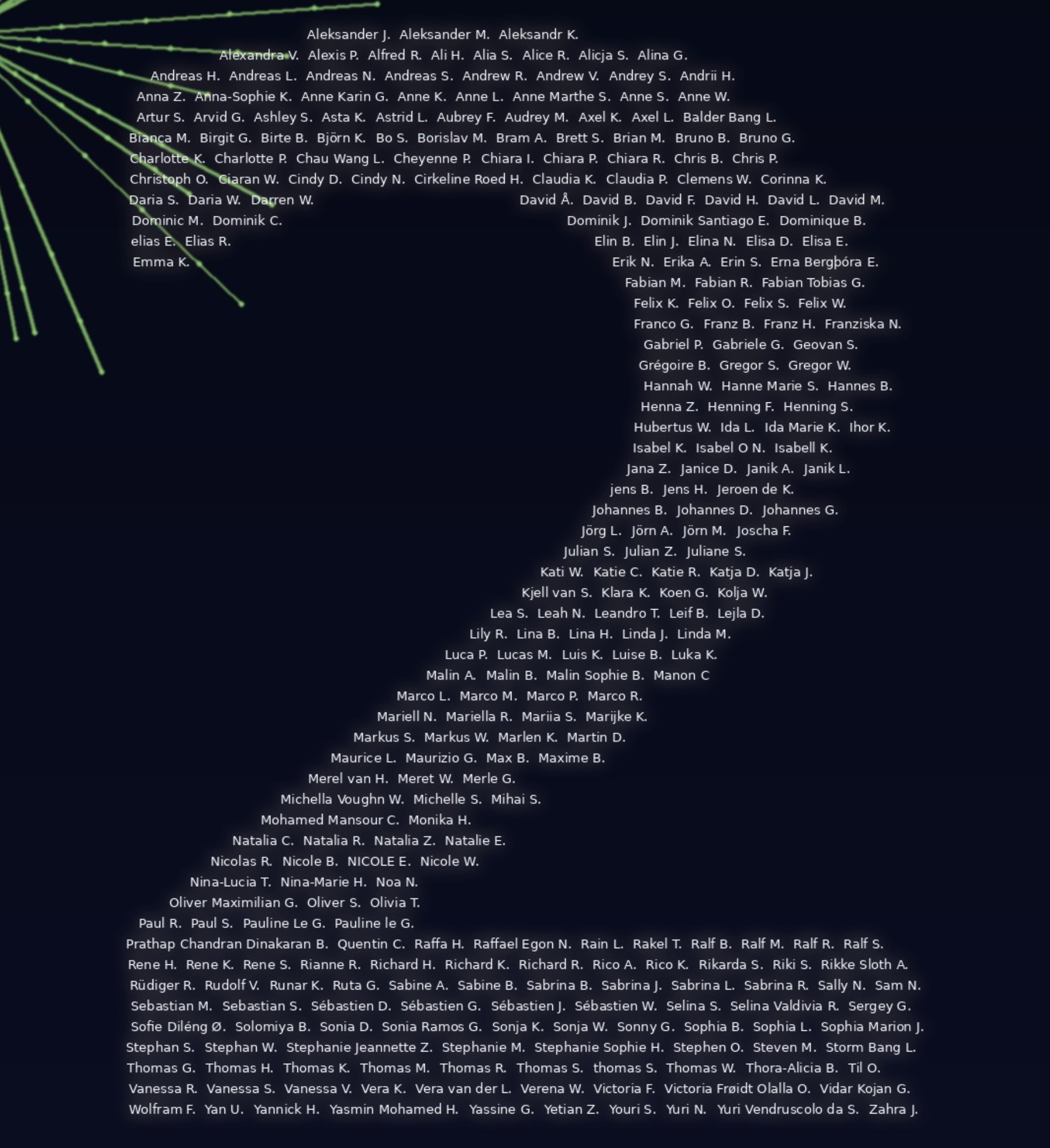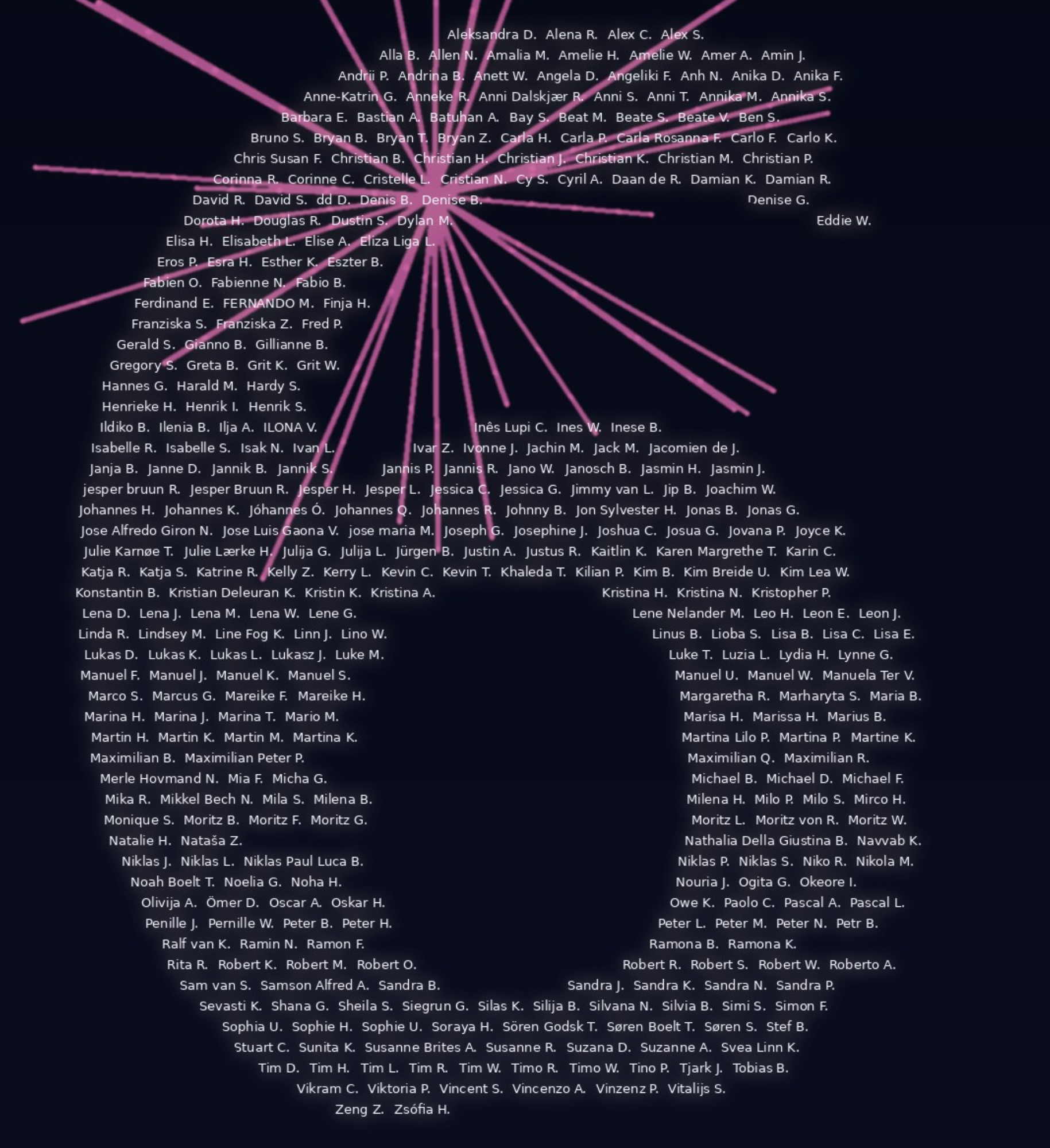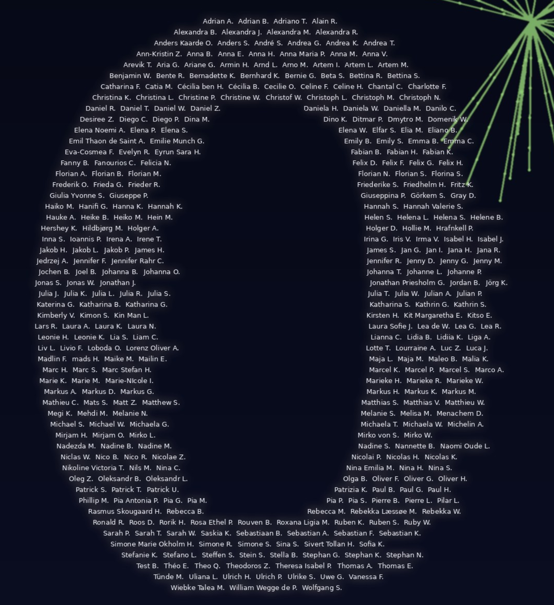 Wir haben ein Bild erstellt, in dem wir unsere Teilnehmer in den Silvesterhimmel geschrieben haben. 🎆